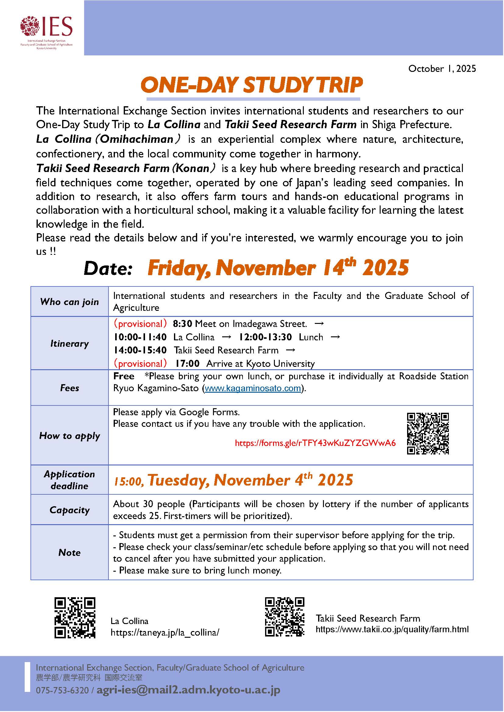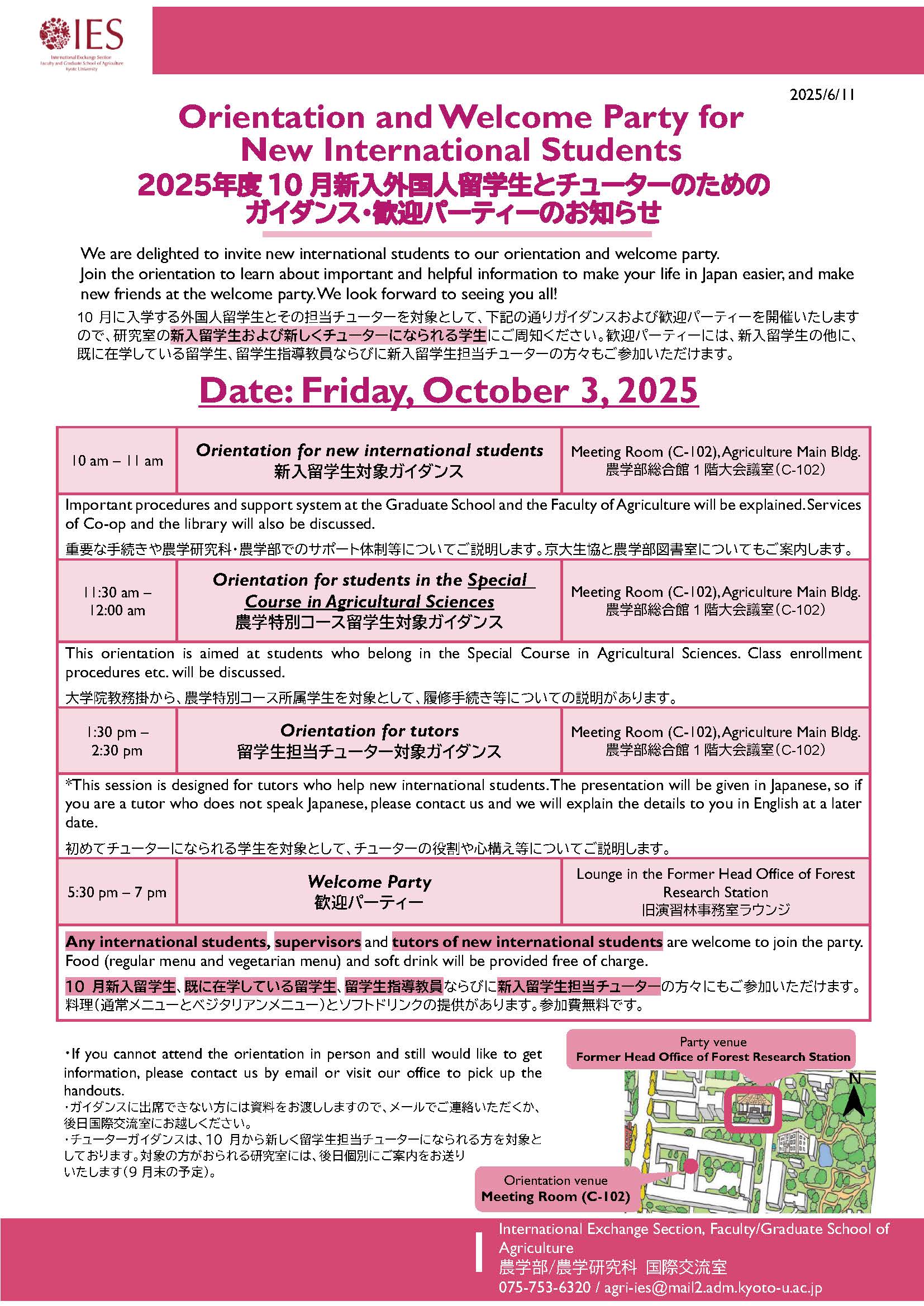 With the goal of promoting international exchange within the Faculty and Graduate School of Agriculture, the International Exchange Section Office offers support to international students and foreign research scholars, and handles the arrangements necessary to invite visiting professors. The International Exchange Section Office holds an informational orientation for entering international students, followed by a welcome party. It also sponsors various activities, such as one-day bus trips, Japanese language classes, a soccer and barbecue party, in the interests of encouraging interaction not only among international students and scholars, but with Japanese students and scholars as well. Events and activities sponsored by the International Exchange Section Office are announced in its biannual newsletter. Please note that this office does not deal with research or curricular matters. Academic inquiries should be directed to the Student Affairs Office, Faculty of Agriculture and Graduate School of Agriculture.